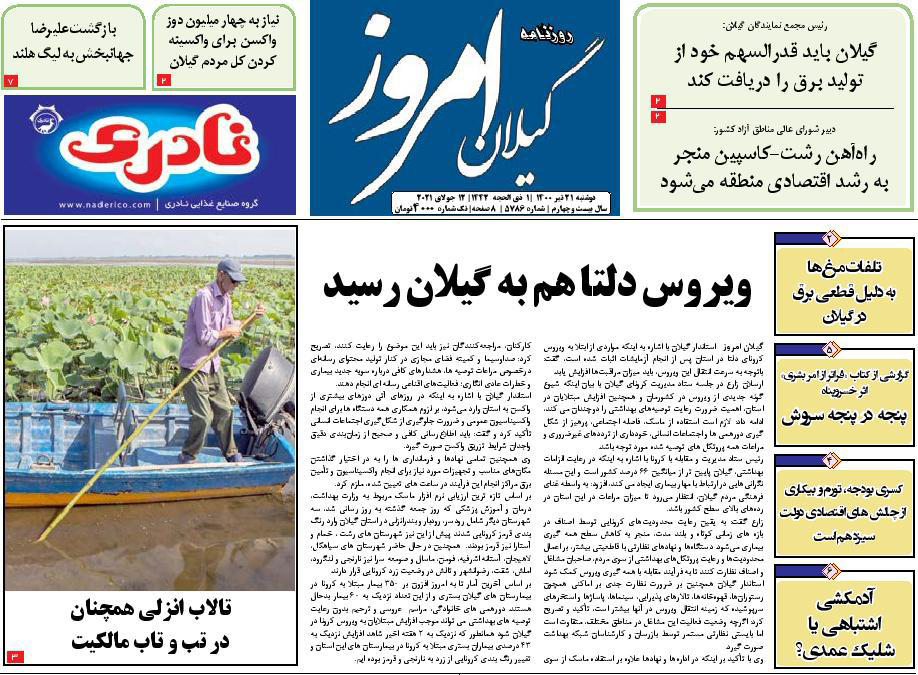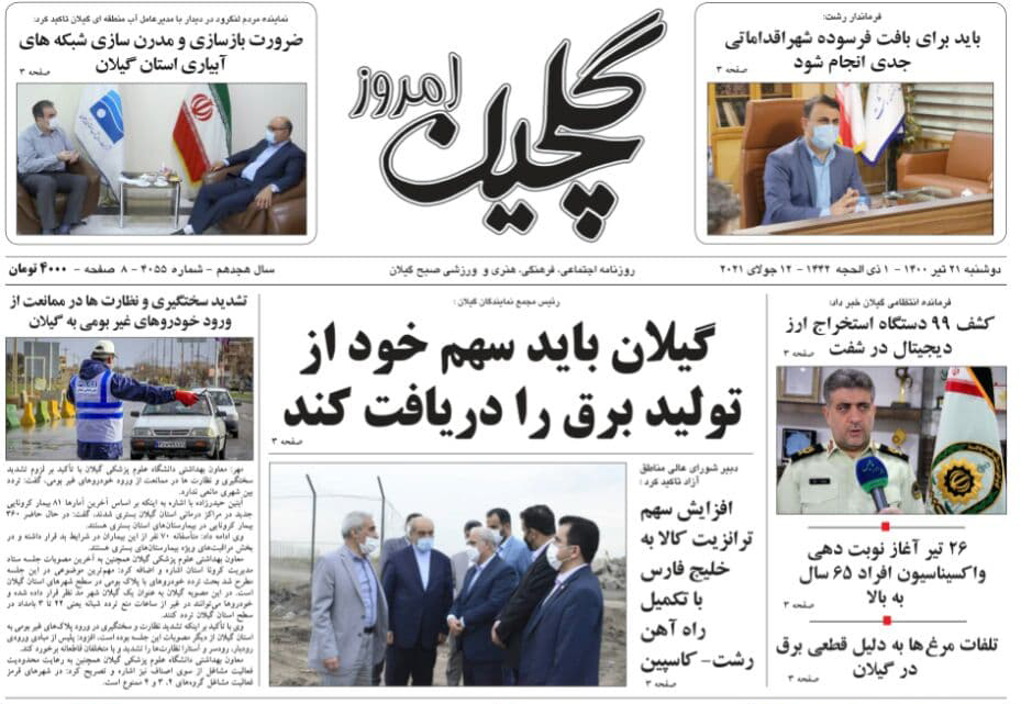 به گزارش گیل نویس، صفحه نخست روزنامههای امروز (دوشنبه،۲۱ تیر) استان گیلان به شرح زیر است: