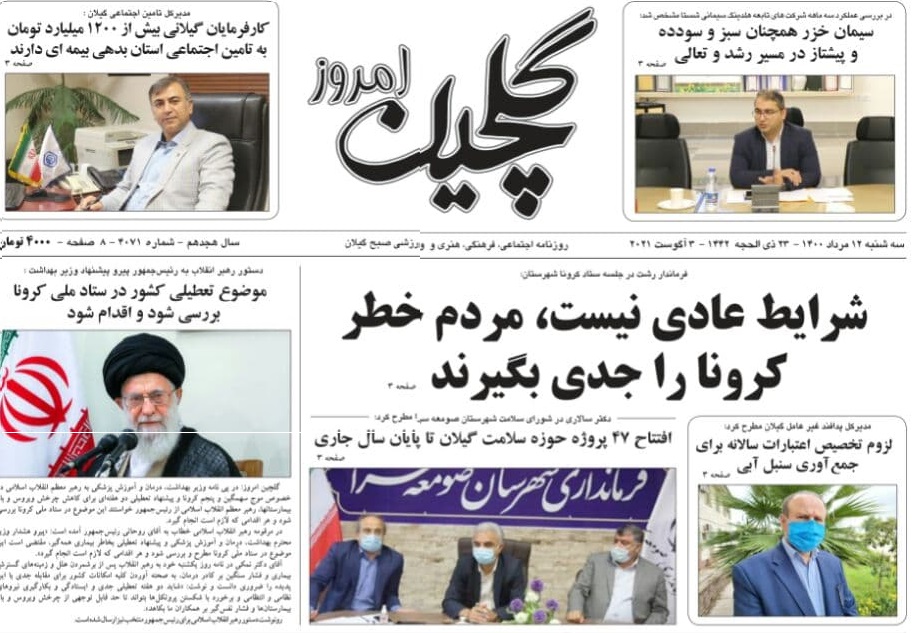 به گزارش گیل نویس، صفحه نخست روزنامههای امروز (سه شنبه، ۱۲ مرداد) استان گیلان به شرح زیر است: