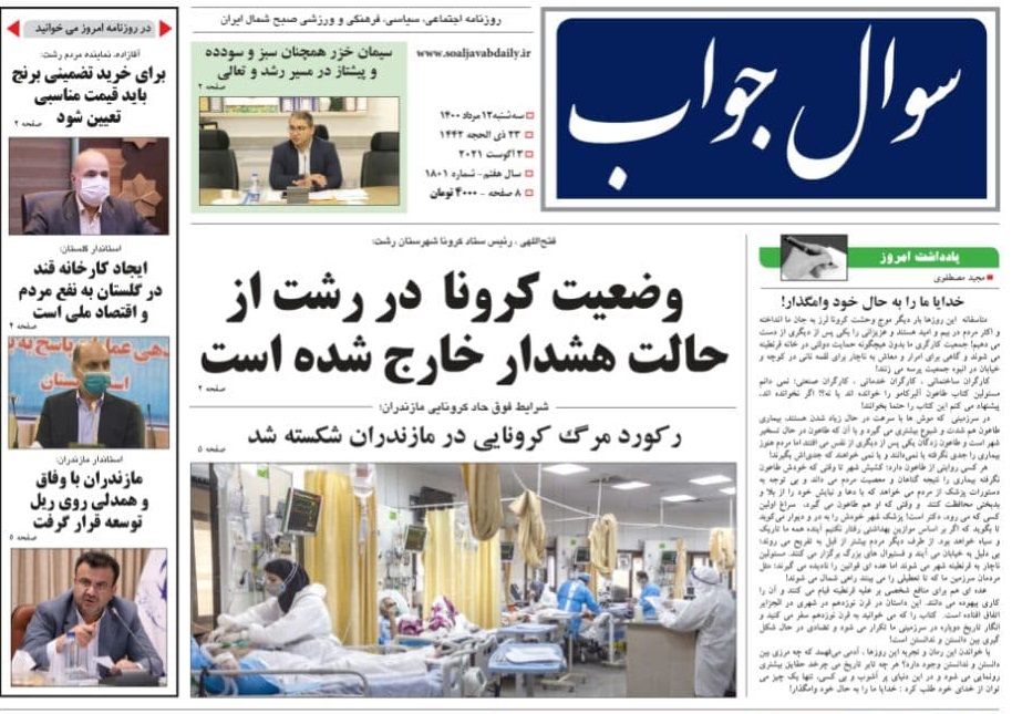 به گزارش گیل نویس، صفحه نخست روزنامههای امروز (سه شنبه، ۱۲ مرداد) استان گیلان به شرح زیر است: