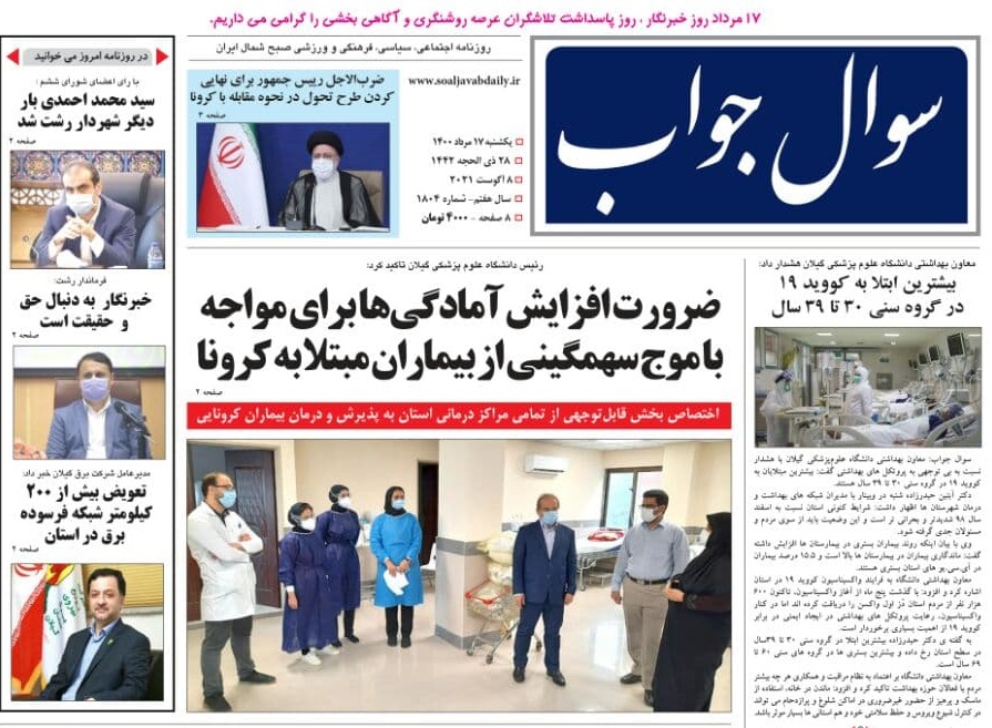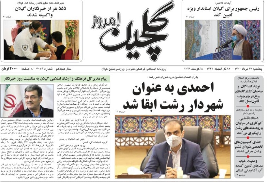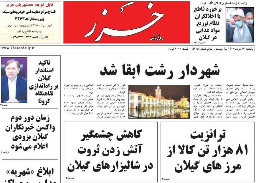«شهردار رشت ابقا شد»، «با رای اعضای ششمین دوره شورا شهر رشت؛ احمدی به عنوان شهردار رشت ابقا شد»، «رئیس دانشگاه علوم پزشکی گیلان اعلام کرد: ضرورت افزایش آمادگی ها برای مواجه با موج سهمگینی از بیماران مبتلا به کرونا»و «راهکار مجلس برای«تبدیل وضعیت» نیروها چیست؟ زخم کاری آشفتگی استخدام ها» از عناوین روزنامه‌های امروز (17مرداد) استان گیلان است.