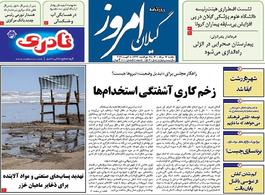به گزارش گیل نویس، صفحه نخست روزنامه‌های امروز (یکشنبه، ۱۷ مرداد) استان گیلان به شرح زیر است: