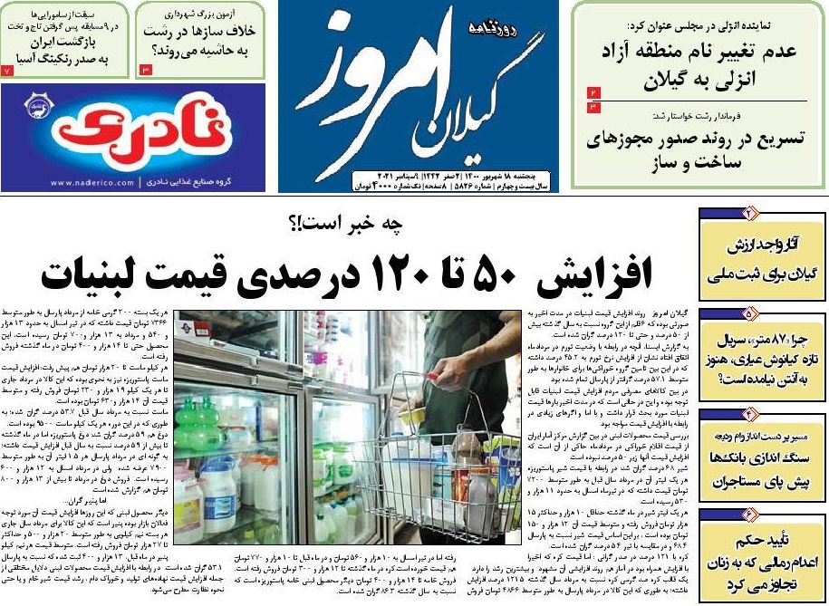 به گزارش گیل نویس، صفحه نخست روزنامههای امروز (پنجشنبه، ۱۸ شهریور) استان گیلان به شرح زیر است: