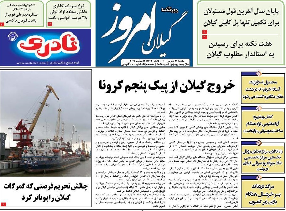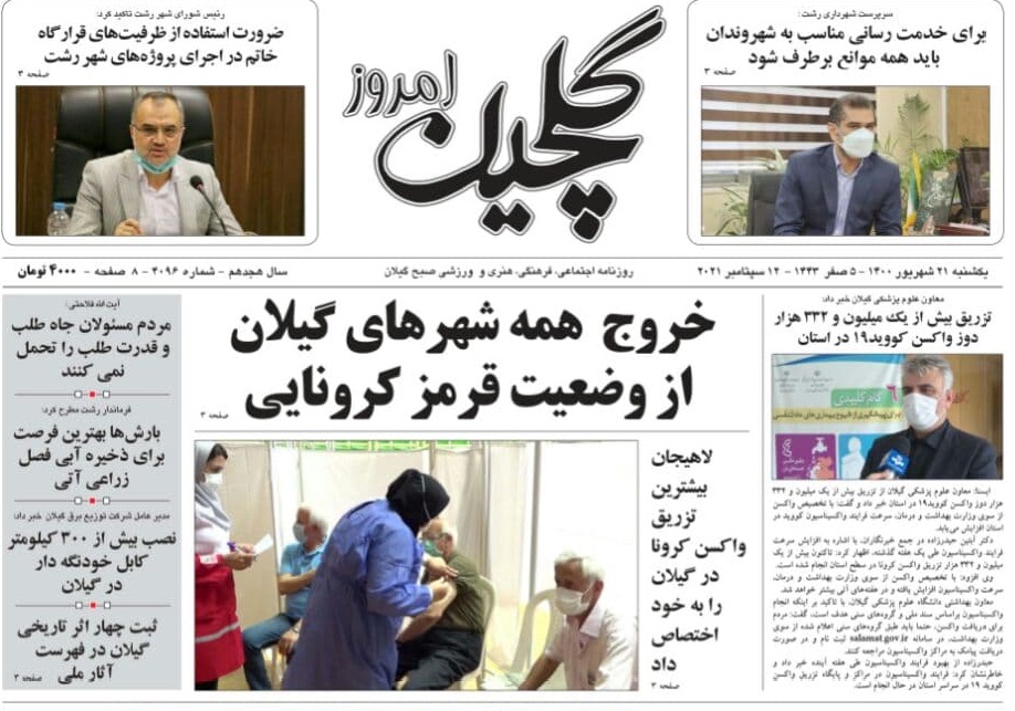 به گزارش گیل نویس، صفحه نخست روزنامههای امروز (یکشنبه، ۲۱ شهریور) استان گیلان به شرح زیر است: