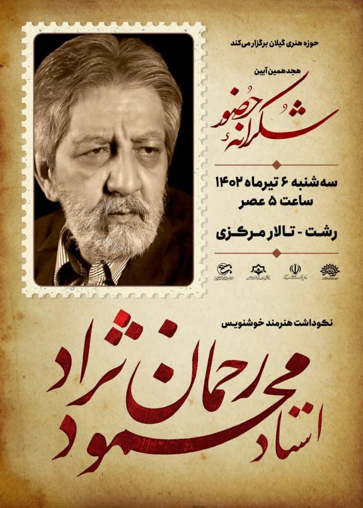 به گزارش گیل نویس، بهپاس سالها تلاش استاد «محمود رحماننژاد» در عرصه هنر خوشنویسی، هجدهمین برنامه «شکرانه حضور» در نکوداشت این هنرمند نامی کشورمان برگزار میشود.