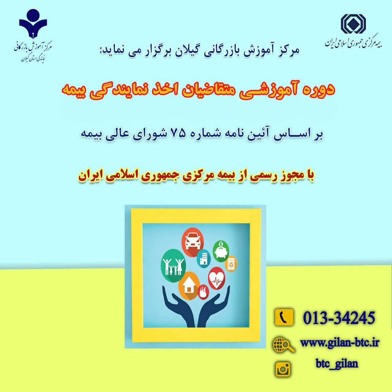 وی همچنین با توجه به اعطا مجوز رسمی برگزاری دوره های تخصصی آموزشی بیمه به این مرکز، تاکید کرد: متقاضیان اخذ کارگزاری بیمه دیگر نیاز به حضور در استانهای دیگر جهت آموزش در این زمینه را ندارند و با مراجعه به مرکز آموزش بازرگانی استان گیلان می توانند از تمام آموزشهای لازم جهت اخذ این مجوز برخوردار گردند.