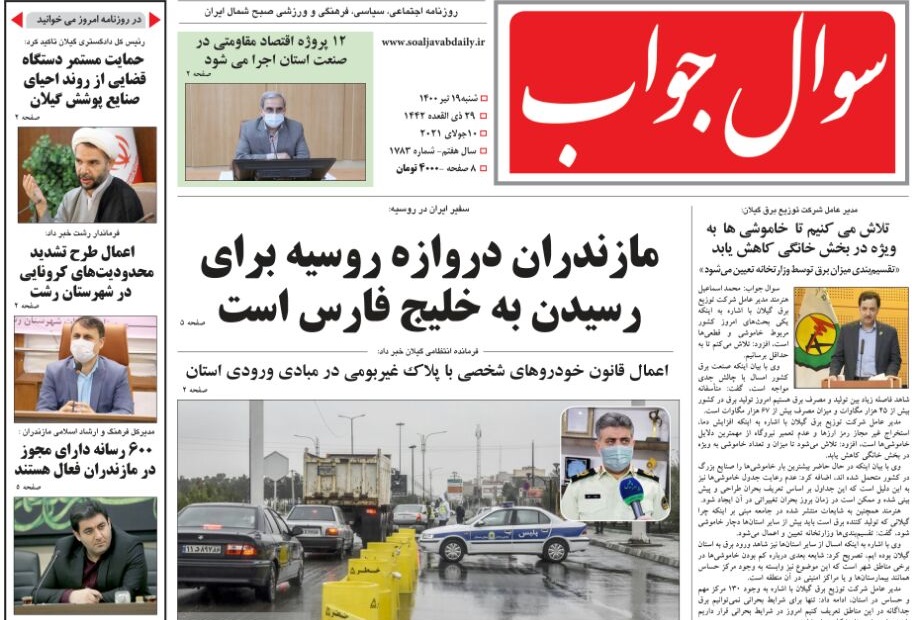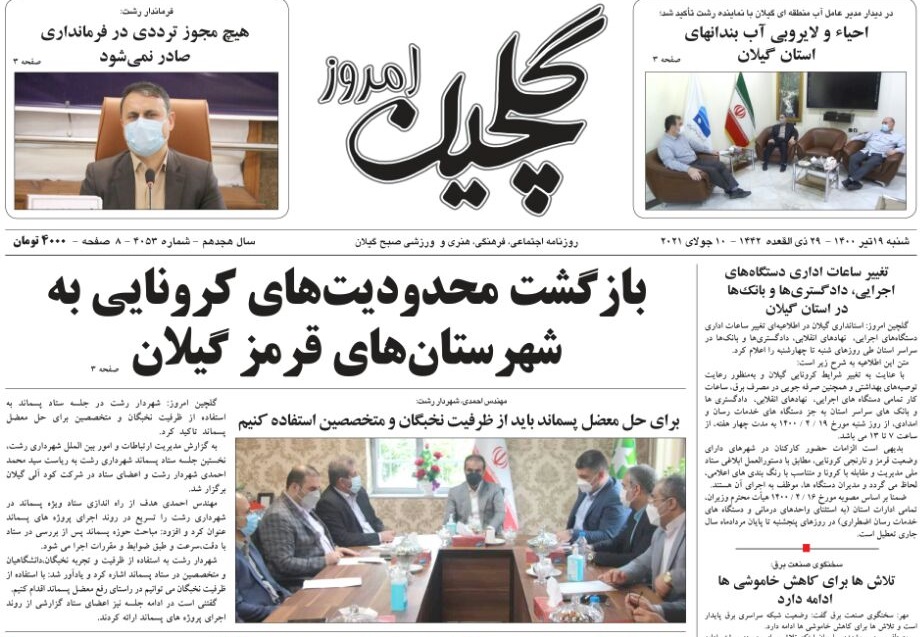 صفحه اول روزنامه‌های گیلان – شنبه ۱۹ تیر ۱۴۰۰