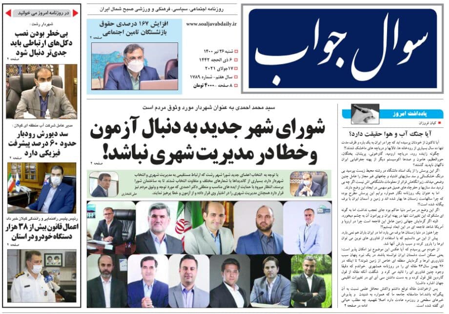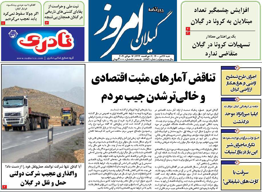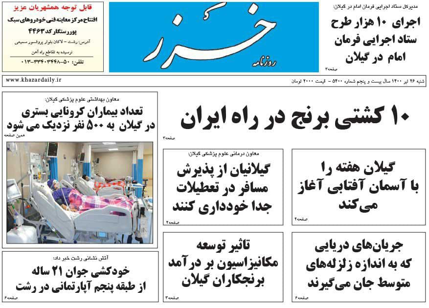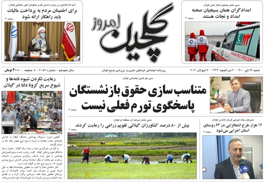 به گزارش گیل نویس، صفحه نخست روزنامههای امروز (شنبه، ۲۶ تیر) استان گیلان به شرح زیر است: