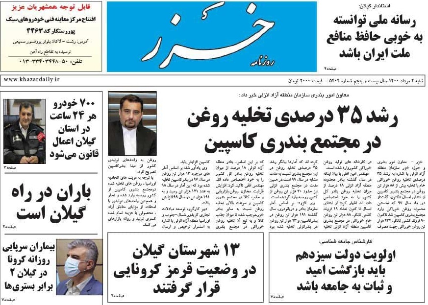 به گزارش گیل نویس، صفحه نخست روزنامههای امروز (شنبه، ۲مرداد ) استان گیلان به شرح زیر است: