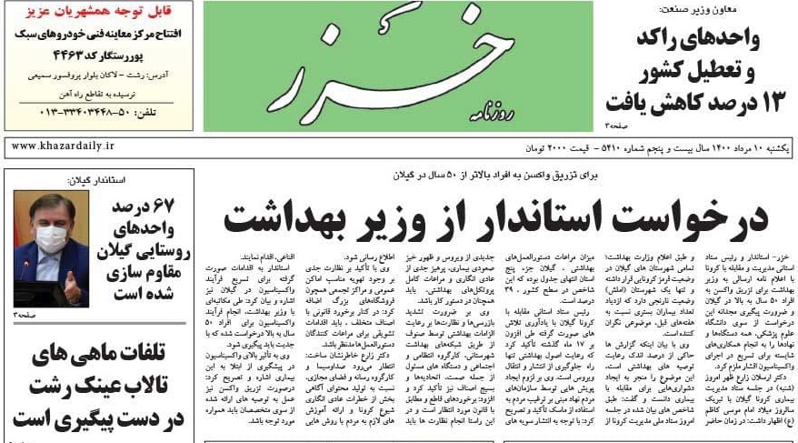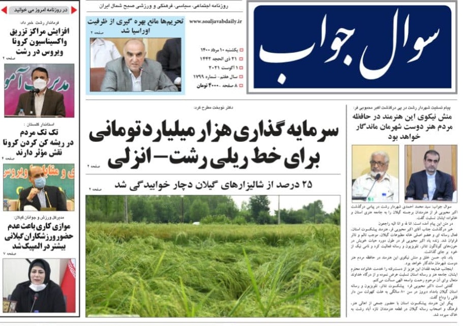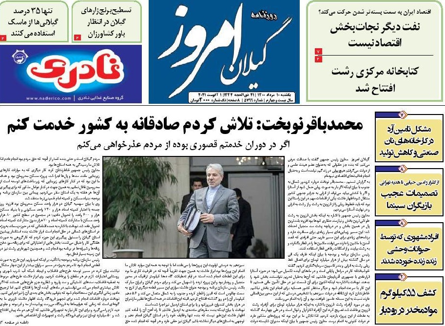 به گزارش گیل نویس، صفحه نخست روزنامههای امروز (یکشنبه، ۱۰ مرداد) استان گیلان به شرح زیر است: