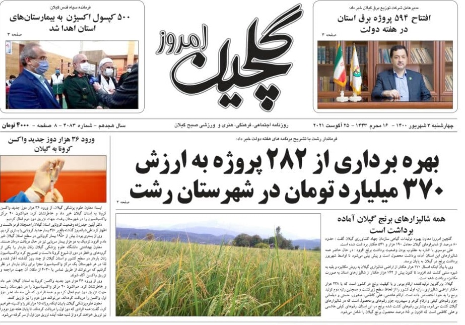 به گزارش گیل نویس، صفحه نخست روزنامههای امروز (چهارشنبه، ۳ شهریور) استان گیلان به شرح زیر است: