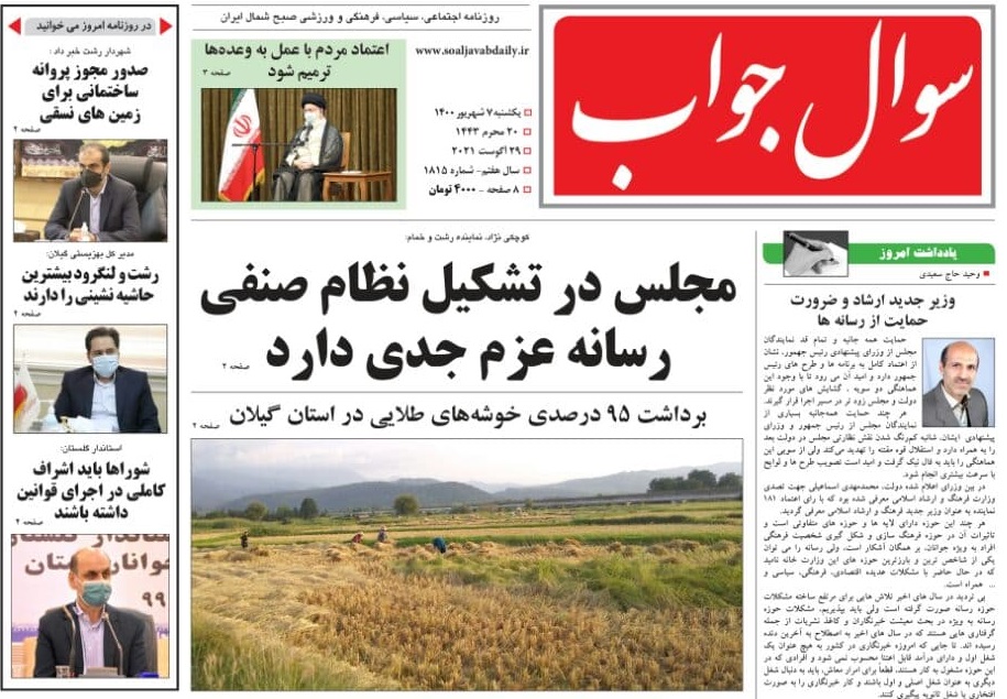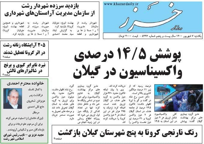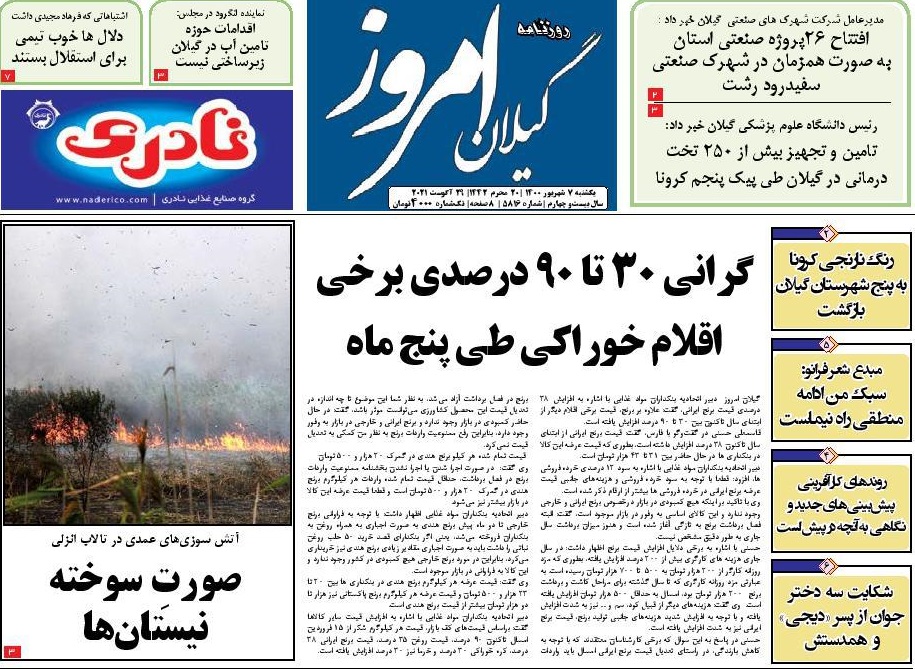 به گزارش گیل نویس، صفحه نخست روزنامههای امروز (یکشنبه، ۷ شهریور) استان گیلان به شرح زیر است: