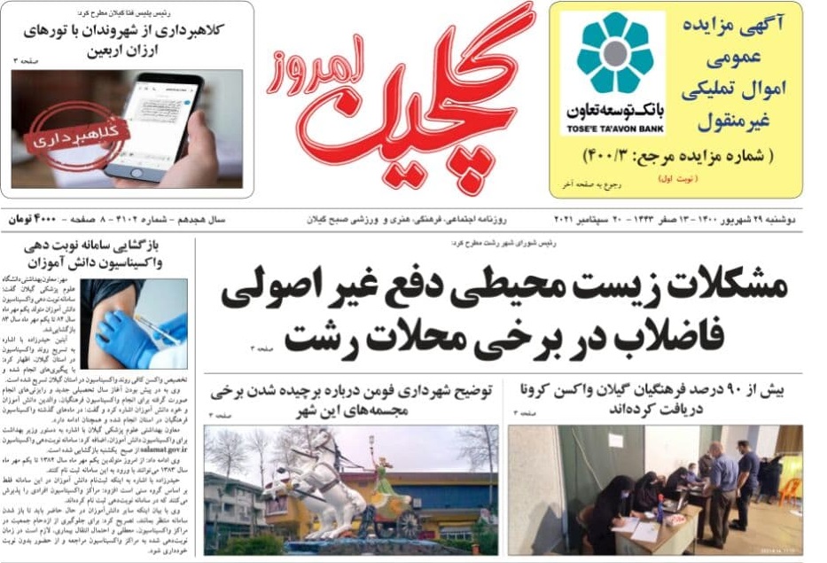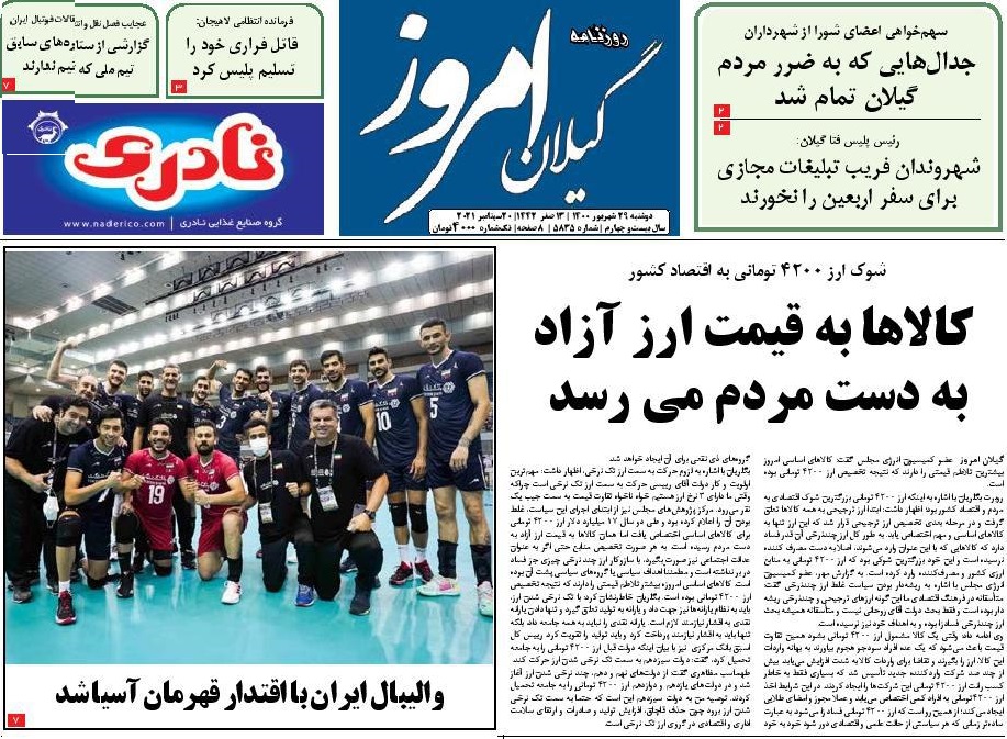 به گزارش گیل نویس، صفحه نخست روزنامه‌های امروز (دوشنبه،۲۹ شهریور) استان گیلان به شرح زیر است: