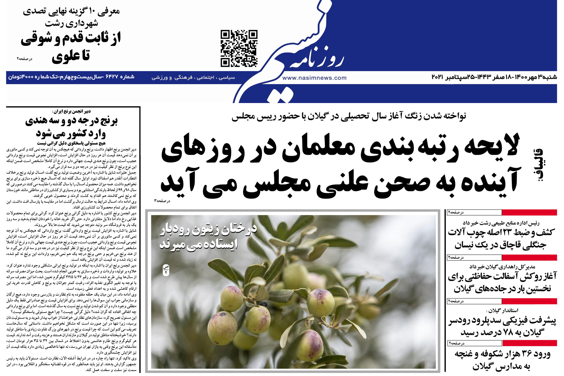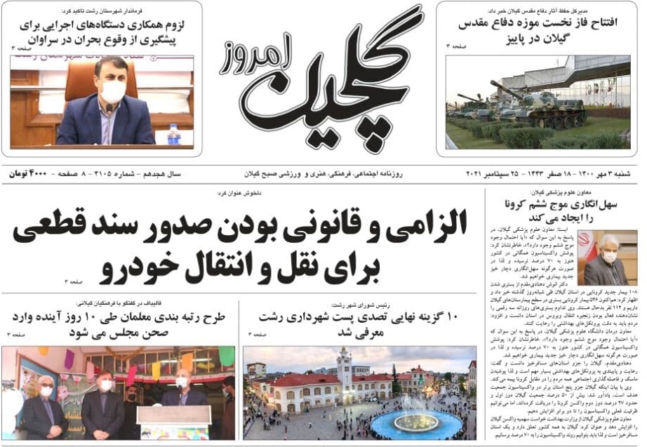 به گزارش گیل نویس، صفحه نخست روزنامههای امروز (شنبه، ۳ مهر) استان گیلان به شرح زیر است: