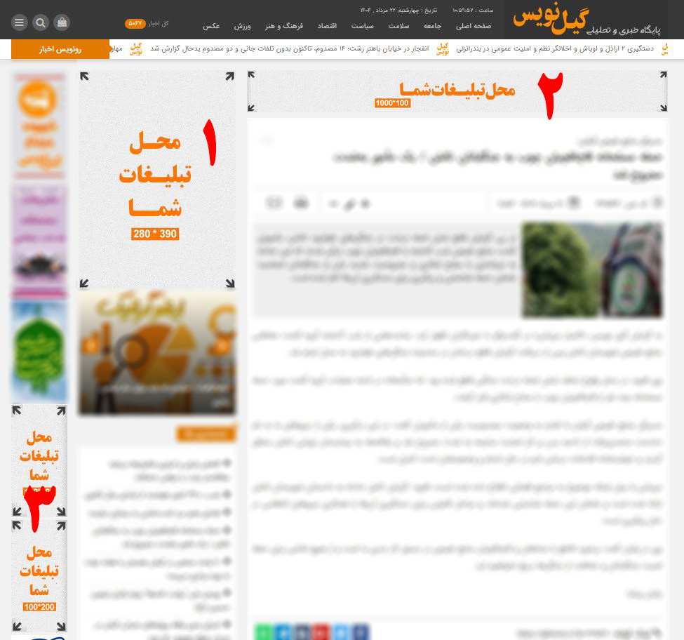 هزینه تبلیغات در پایگاه خبری گیلنویس |
